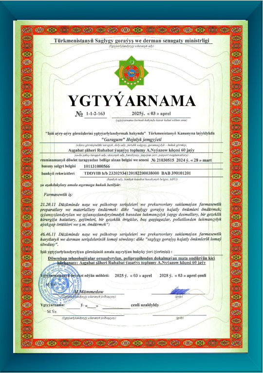 Since 1992, “Garagum” Economic Society has been registered on the territory of Turkmenistan in accordance with the current legislation of the country and it is a member of the Union of Industrialists and Entrepreneurs of Turkmenistan. Garagum Nonwoven is innovative branch of a Garagum Economic Society, specializing in production of spunbond, meltblown, spun-melt nonwoven fabrics.